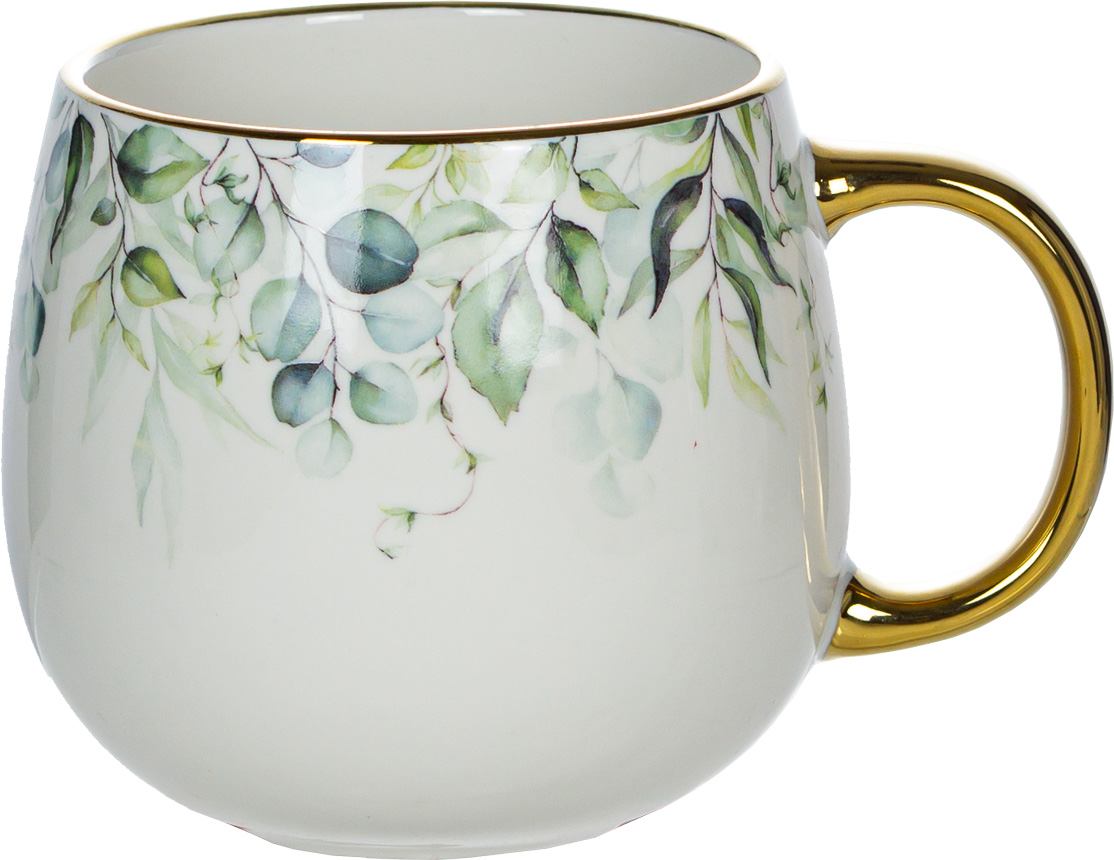 Kubek Botanical to stylowe połączenie kolorów białego, zielonego i złotego, które nadają mu elegancki i naturalny charakter. Jego pojemność wynosi 550 ml, co sprawia, że jest idealny do ulubionych napojów. Doskonale sprawdzi się zarówno na co dzień, jak i jako ozdobny element w kuchni lub biurze.