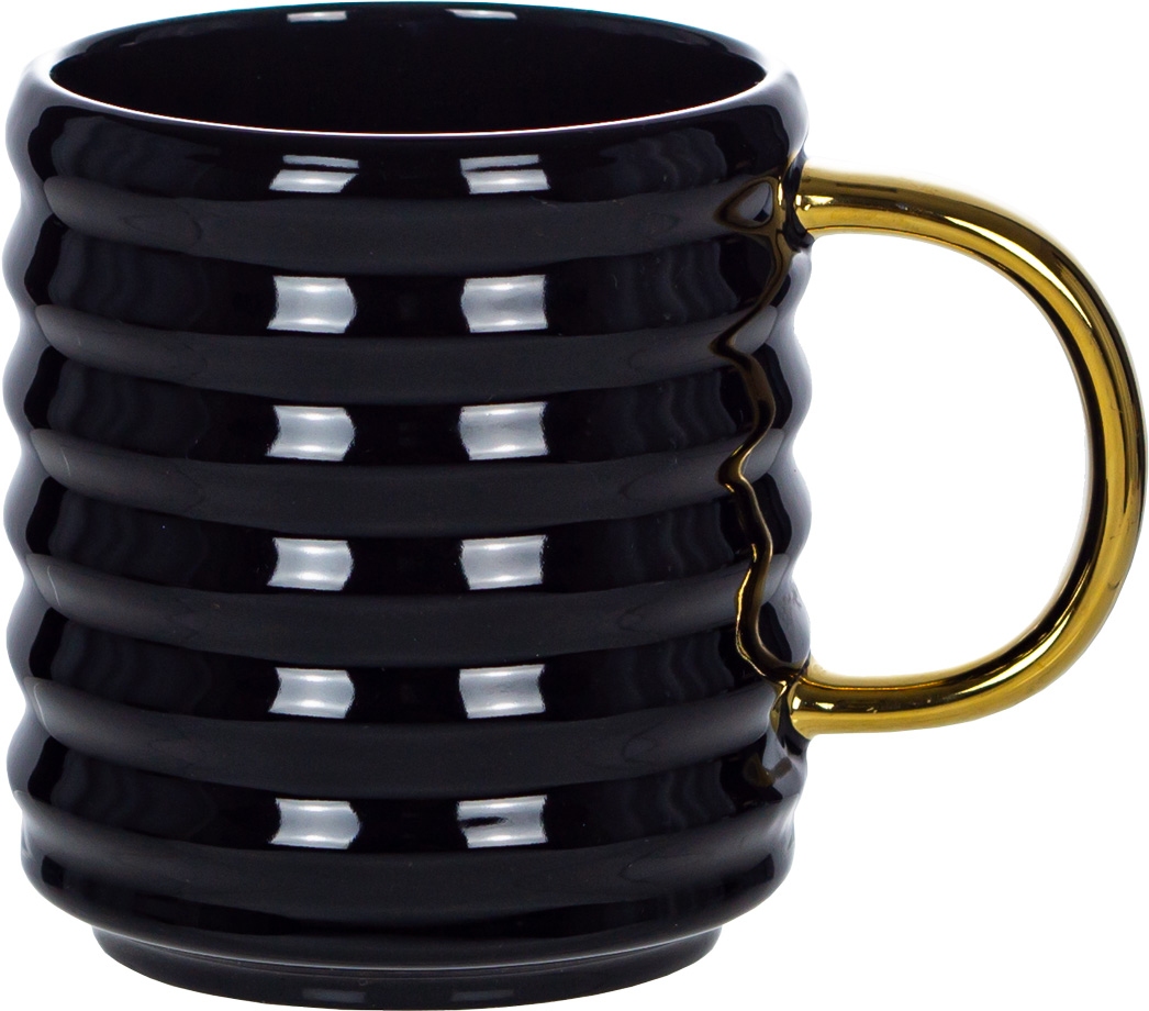 Kubek 110 ryflowany w kolorach czarnym i złotym to elegancki i nowoczesny dodatek do codziennego użytku. Pojemność 420 ml sprawia, że jest idealny do kawy, herbaty czy innych napojów. Ryflowana faktura nadaje mu wyjątkowego charakteru, a złote akcenty dodają luksusowego wyglądu, doskonale pasującego do stylowych wnętrz.