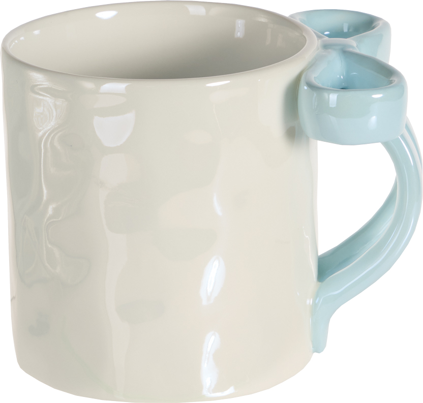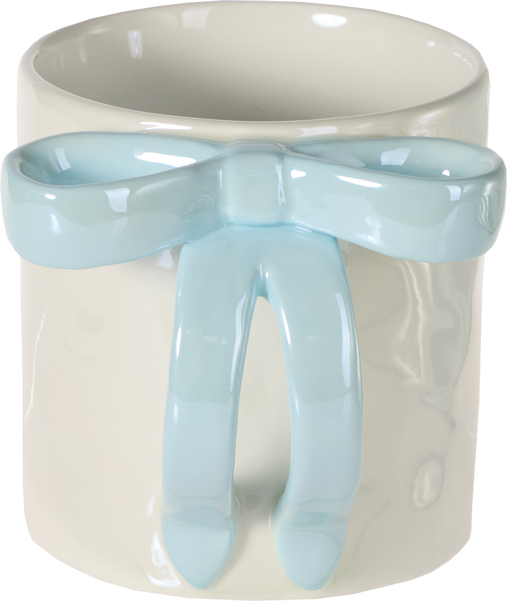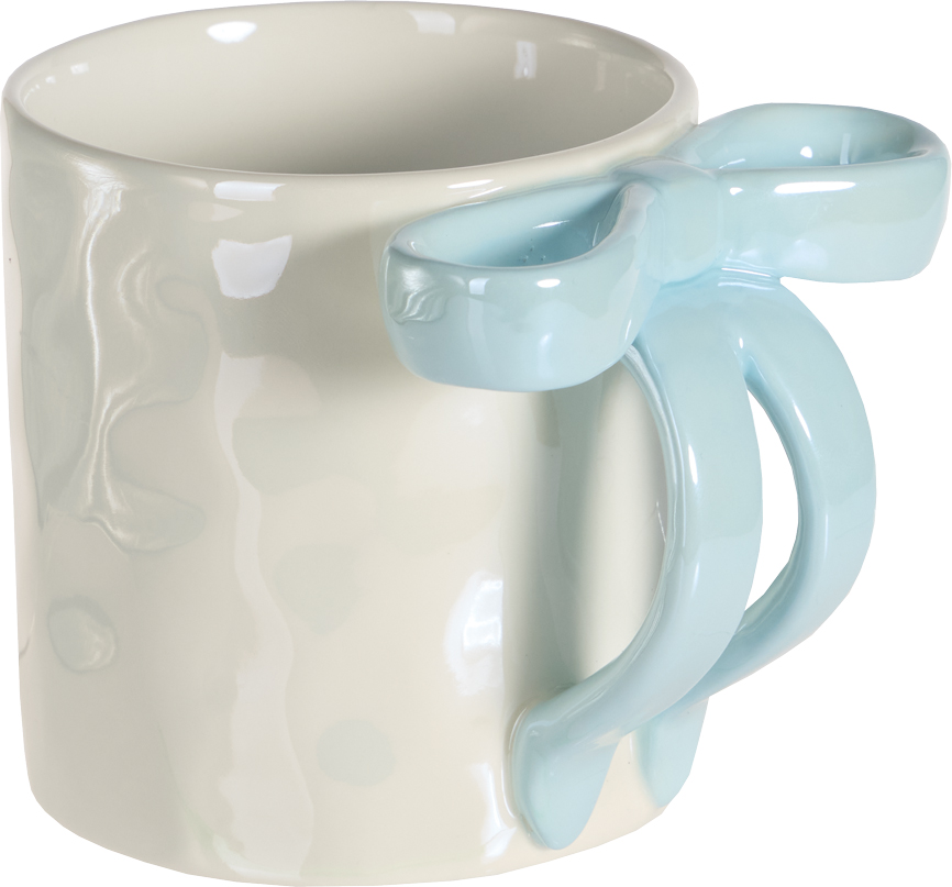 Kubek z kokardką Bella 168 (biały z perłowym połyskiem/jasnoniebieski)