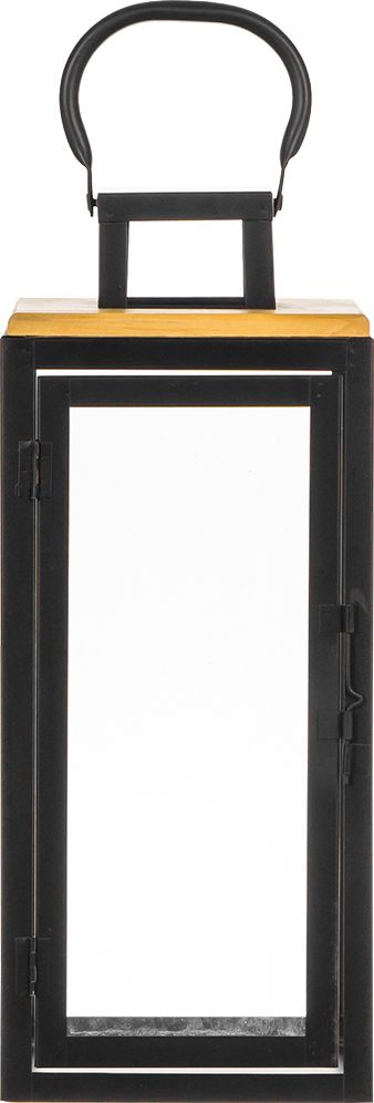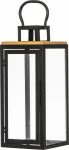 Stylowy lampion Stella w kolorze czarnym z drewnianym daszkiem to doskonała ozdoba do zastosowania we wnętrzu domu, jak i na tarasie lub w ogrodzie. Dostępne również w innych rozmiarach.