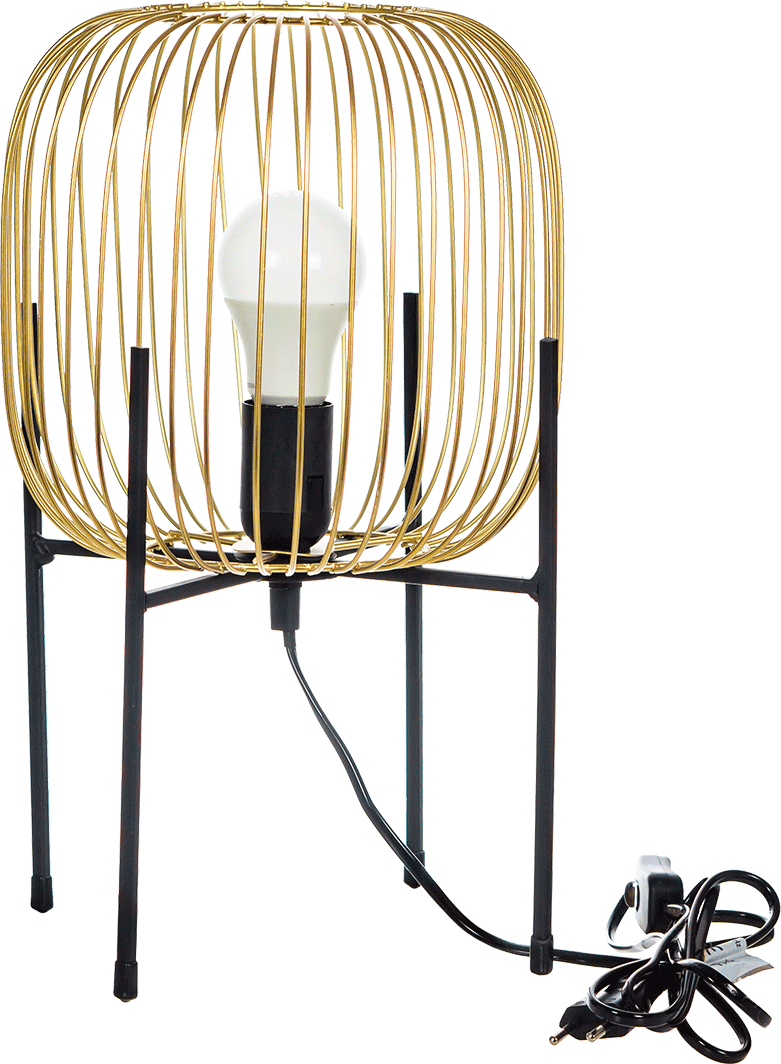 Lampka Miranda ze złotym kloszem i czarnymi metalowymi nóżkami. Wspaniale wkomponuje sie we wnętrza w nowoczesnym lub skandynawskim stylu.