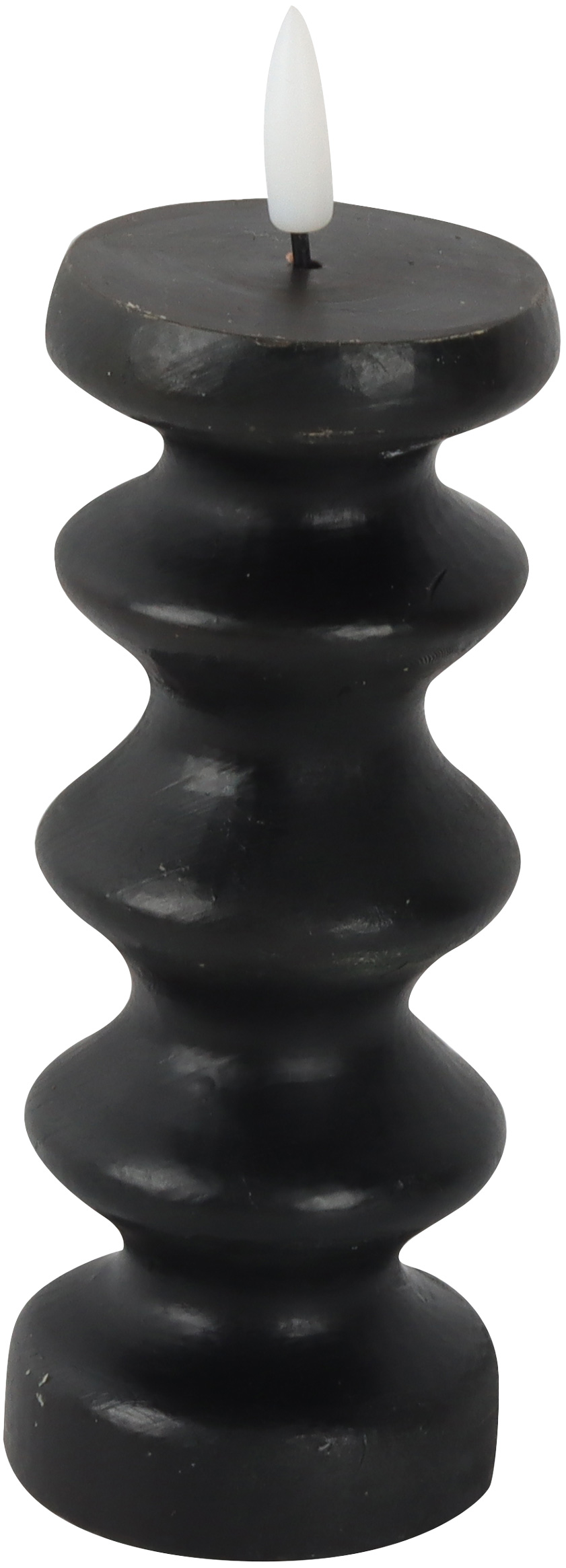 Świeca woskowa (duża) "SOHO"-7 LED w kolorze czarnym to elegancki i stylowy element dekoracyjny. Jej wymiary 6 x 6 x 15,2 cm sprawiają, że doskonale prezentuje się na stole, komodzie czy półce. Dzięki technologii LED emituje ciepłe, przytulne światło, tworząc nastrojową atmosferę bez ryzyka otwartego ognia. Nowoczesny, minimalistyczny design i głęboka czerń sprawiają, że świetnie komponuje się zarówno z industrialnymi, nowoczesnymi, jak i klasycznymi wnętrzami.