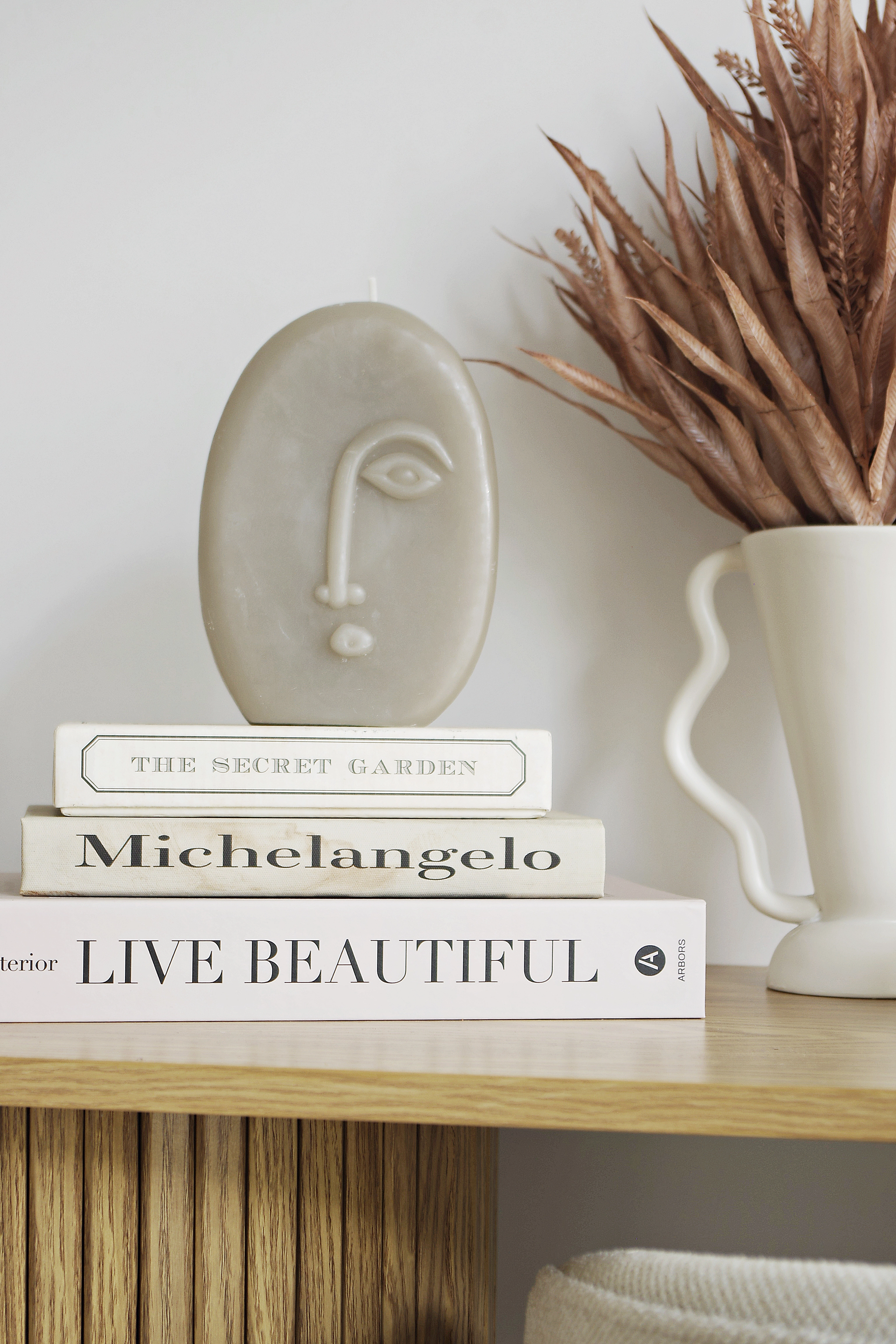 Świeca woskowa "SOHO"-34 w kolorze beżowym to elegancki i stylowy element dekoracyjny. Jej wymiary wynoszą 11,3 cm szerokości, 4,8 cm głębokości i 16,2 cm wysokości, co sprawia, że doskonale prezentuje się na stole, komodzie lub półce. Minimalistyczny design i neutralna kolorystyka nadają wnętrzu przytulny i harmonijny charakter. Idealna do nowoczesnych i klasycznych aranżacji, tworząc ciepłą i relaksującą atmosferę.
