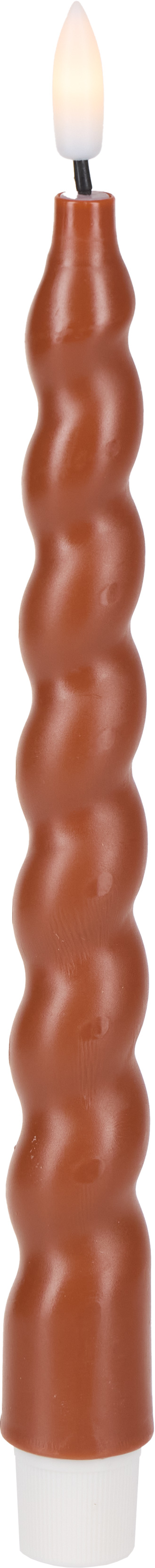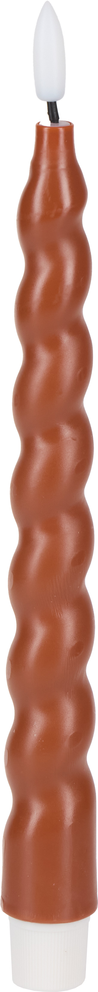 Zestaw 2 świec spiralnych „COZY LIGHT”-4 LED to elegancki komplet dekoracyjny, który wprowadzi do wnętrza przytulny i nastrojowy klimat. Wykonane z prawdziwego wosku w stylowym brązowym kolorze, zachwycają smukłą, spiralną formą, idealną do świeczników, stroików oraz klasycznych aranżacji stołu. Dzięki technologii LED świece emitują delikatne światło imitujące naturalne migotanie płomienia, zapewniając bezpieczną i efektowną alternatywę dla tradycyjnych świec. Wymiary jednej świecy to 2,5 × 2,5 × 24,5 cm.