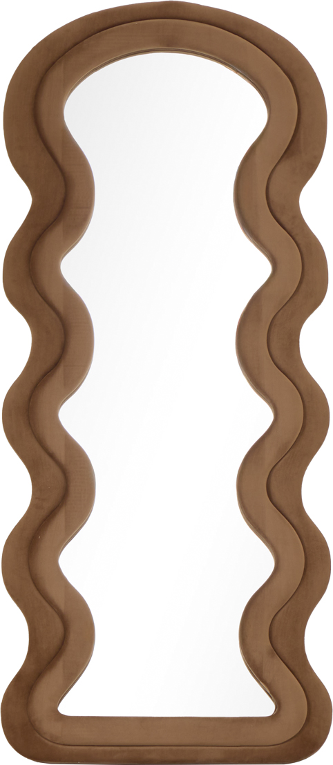 Lustro ścienne „SOHO”-22 w kolorze brązowym to designerski element dekoracyjny, który przyciąga uwagę swoją oryginalną, falowaną formą. Rama wykonana z MDF pokrytego tkaniną typu velvet nadaje mu miękkości i eleganckiego charakteru, tworząc wyjątkowy efekt wizualny.