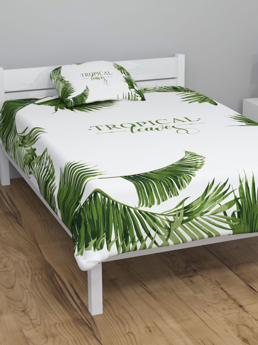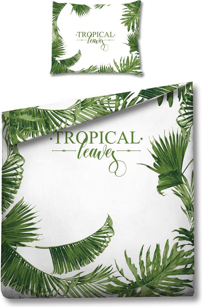 Zestaw pościeli z kolekcji Exotico z dekoracyjnym wzorem, w skład którego wchodzą kołdra i poduszka (70x80cm). Wymiar poszewki na kołdrę wynosi 140 x 200 cm.