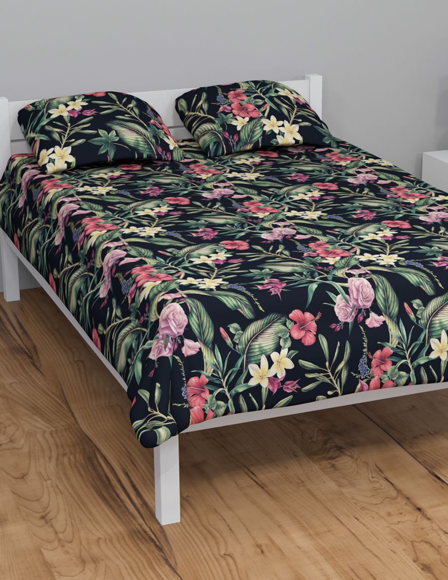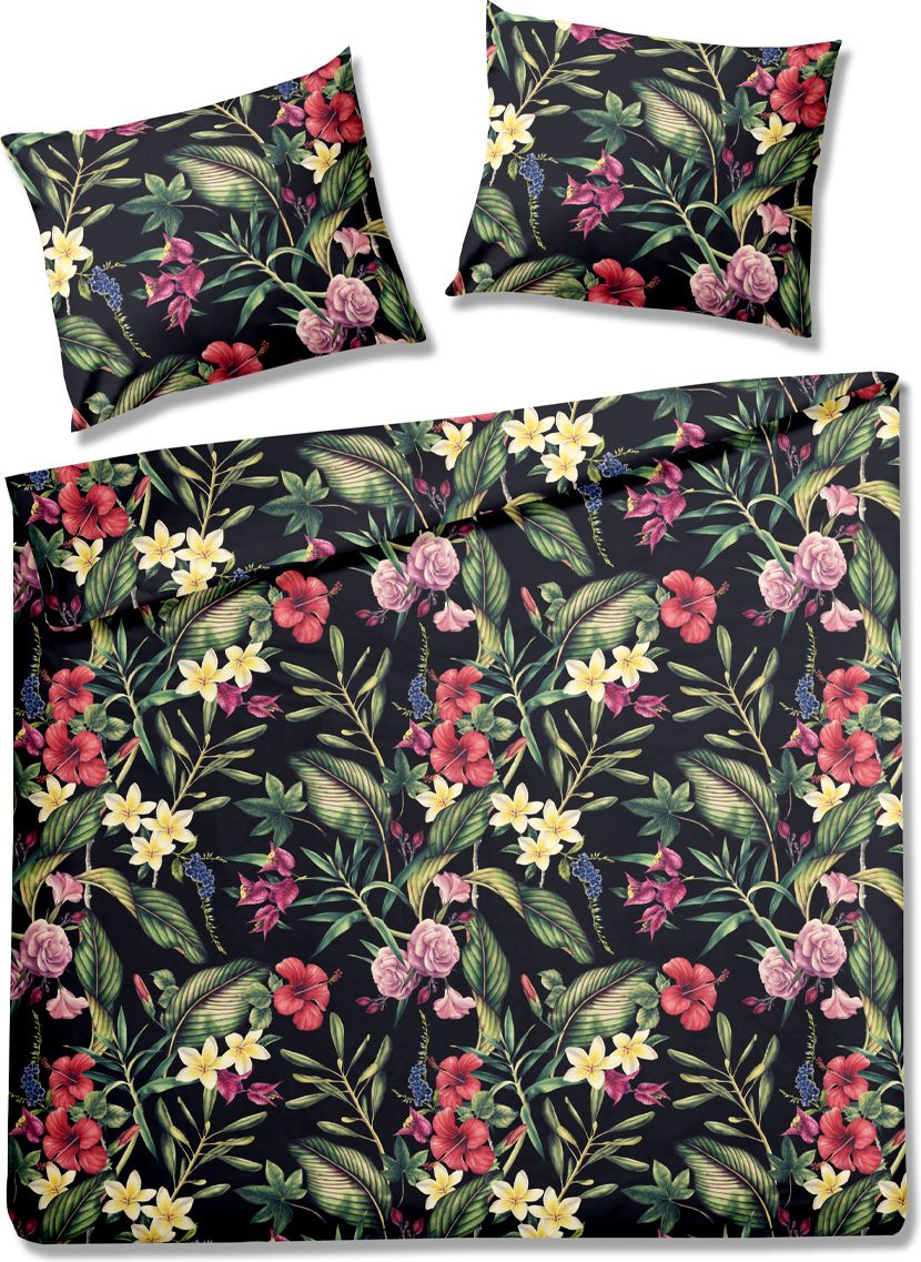 Zestaw pościeli z kolekcji Fiores z dekoracyjnym, kwiatowym wzorem, w skład którego wchodzą dwie poszewki na poduszki (70x80cm) i poszewka na kołdrę. Wymiar poszewki na kołdrę wynosi 220 x 200 cm.
