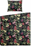 Zestaw pościeli z kolekcji Fiores z dekoracyjnym, kwiatowym wzorem, w skład którego wchodzi jedna poszewka na poduszkę (70x80cm) i poszewka na kołdrę. Wymiar poszewki na kołdrę wynosi 140 x 200 cm.