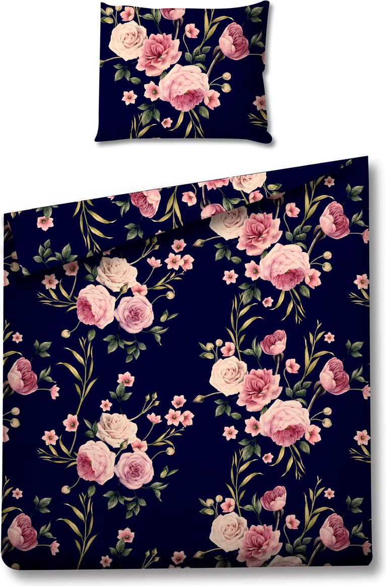Zestaw pościeli z kolekcji ROSES z dekoracyjnym, kwiatowym wzorem, w skład którego wchodzi jedna poszewka na poduszkę (70x80cm) i poszewka na kołdrę. Wymiar poszewki na kołdrę wynosi 140 x 200 cm.