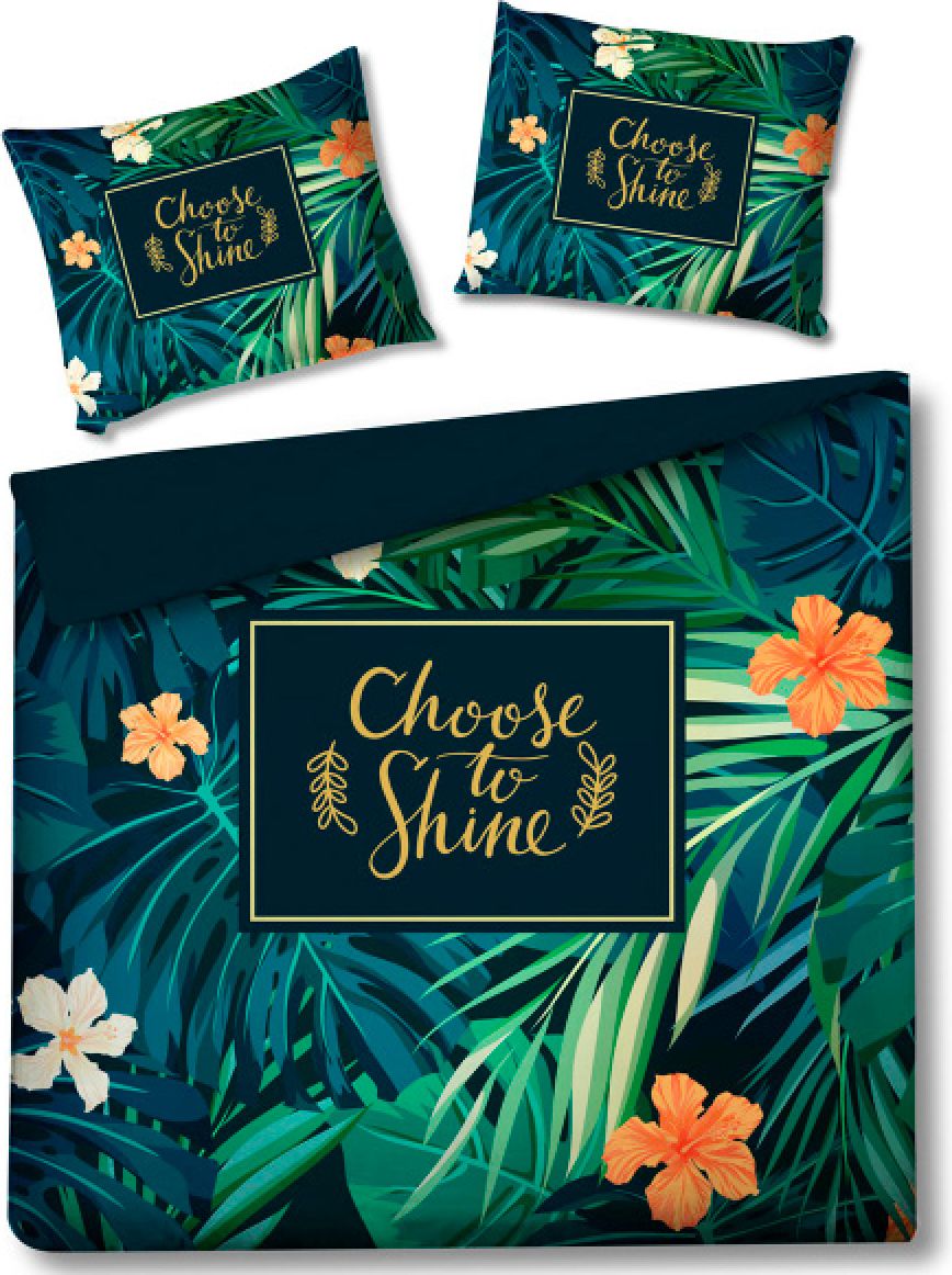 Zestaw pościeli z kolekcji EXOTICO z dekoracyjnym, liściastym wzorem, w skład którego wchodzą dwie poszewki na poduszkę (70x80cm) i poszewka na kołdrę. Wymiar poszewki na kołdrę wynosi 160 x 200 cm.