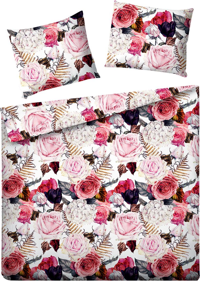 Zestaw pościeli z kolekcji Pires z dekoracyjnym wzorem, w skład którego wchodzą dwie poszewki na poduszki (70x80cm) i poszewka na kołdrę. Wymiar poszewki na kołdrę wynosi 160 x 200 cm.