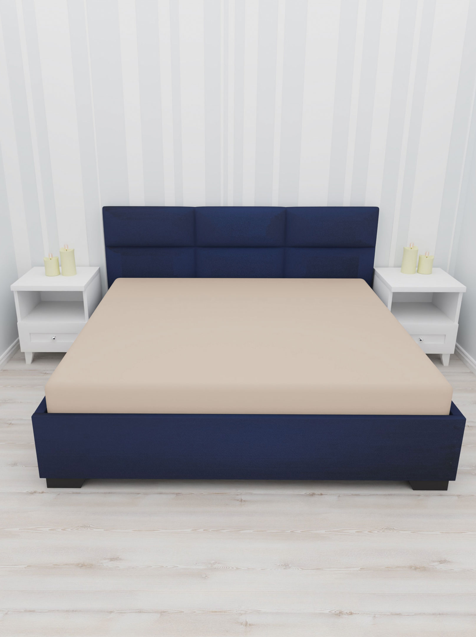 Prześcieradło z gumką w kolorze beżowym o większej zakładce, która sprawia, że prześcieradło pasuje do materacy o grubości do 30cm.