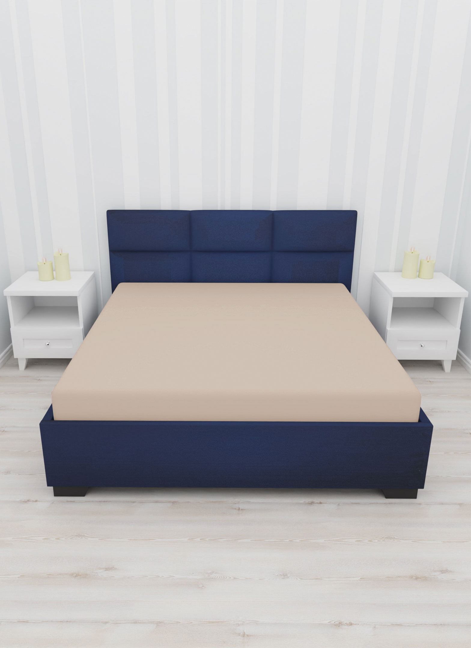 Prześcieradło z gumką w kolorze beżowym o większej zakładce, która sprawia, że prześcieradło pasuje do materacy o grubości do 30cm.