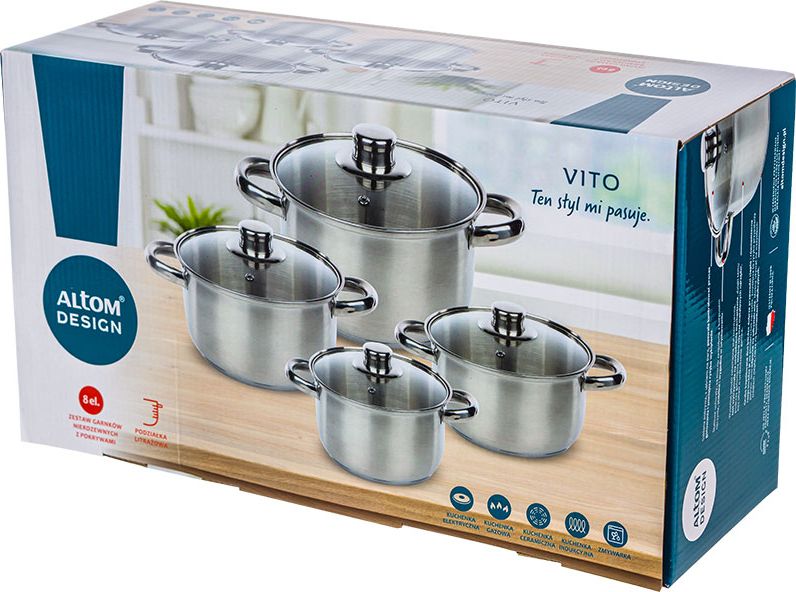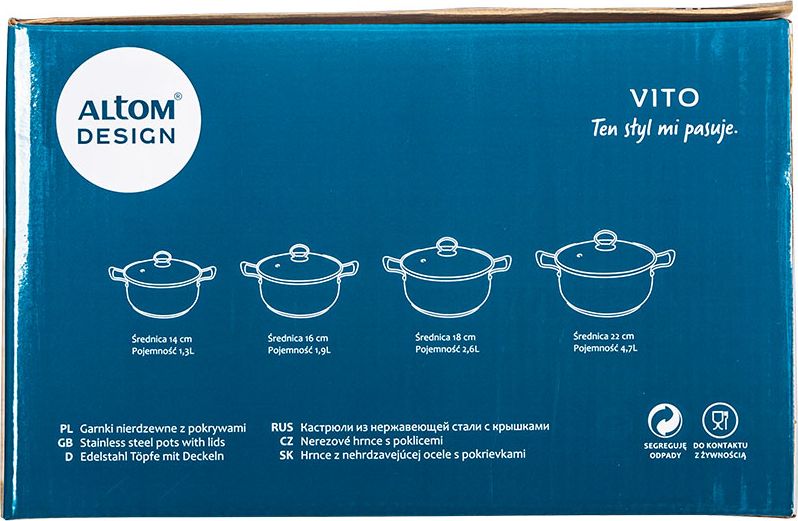 Zestaw garnków ze stali nierdzewnej Vito jest połączeniem funkcjonalności z nowoczesnym designem.