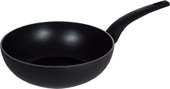 Patelnia wok w kolorze czarnym, wykonana z kutego aluminium z powłoką Teflon Select. Można ją stosować na wszystkich rodzajach kuchenek, natomiast podczas użytkowania patelni należy nie używać metalowych akcesoriów.
