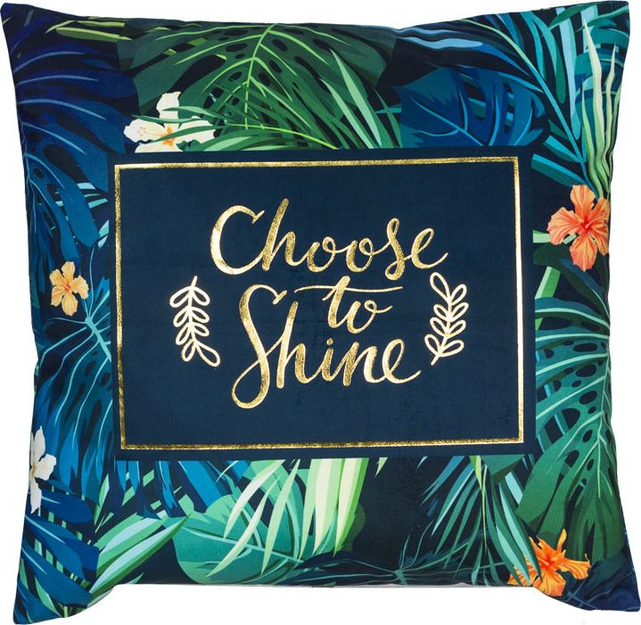 Poszewka na poduszkę Pires z wzorem w liście i kwiaty oraz jednostronnym napisem CHOOSE TO SHINE - wym. 45x45cm.