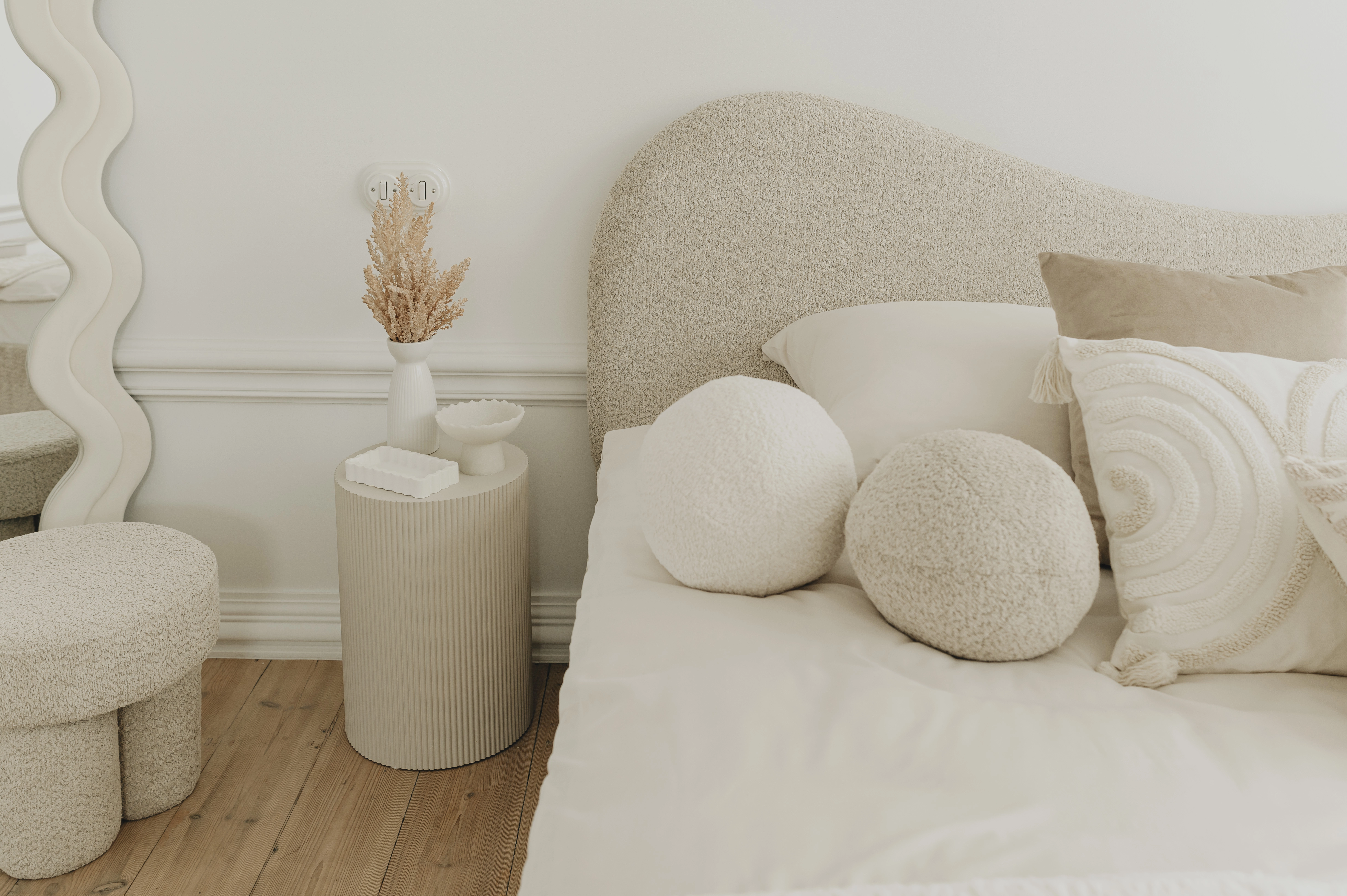Poduszka okrągła "PIRES"-55 w kolorze boucle beżowym to elegancki dodatek do wnętrza. Jej średnica wynosi 30 cm, a miękka tkanina boucle nadaje pomieszczeniu przytulnego i nowoczesnego charakteru. Idealna jako dekoracyjny akcent na sofie, fotelu czy łóżku.