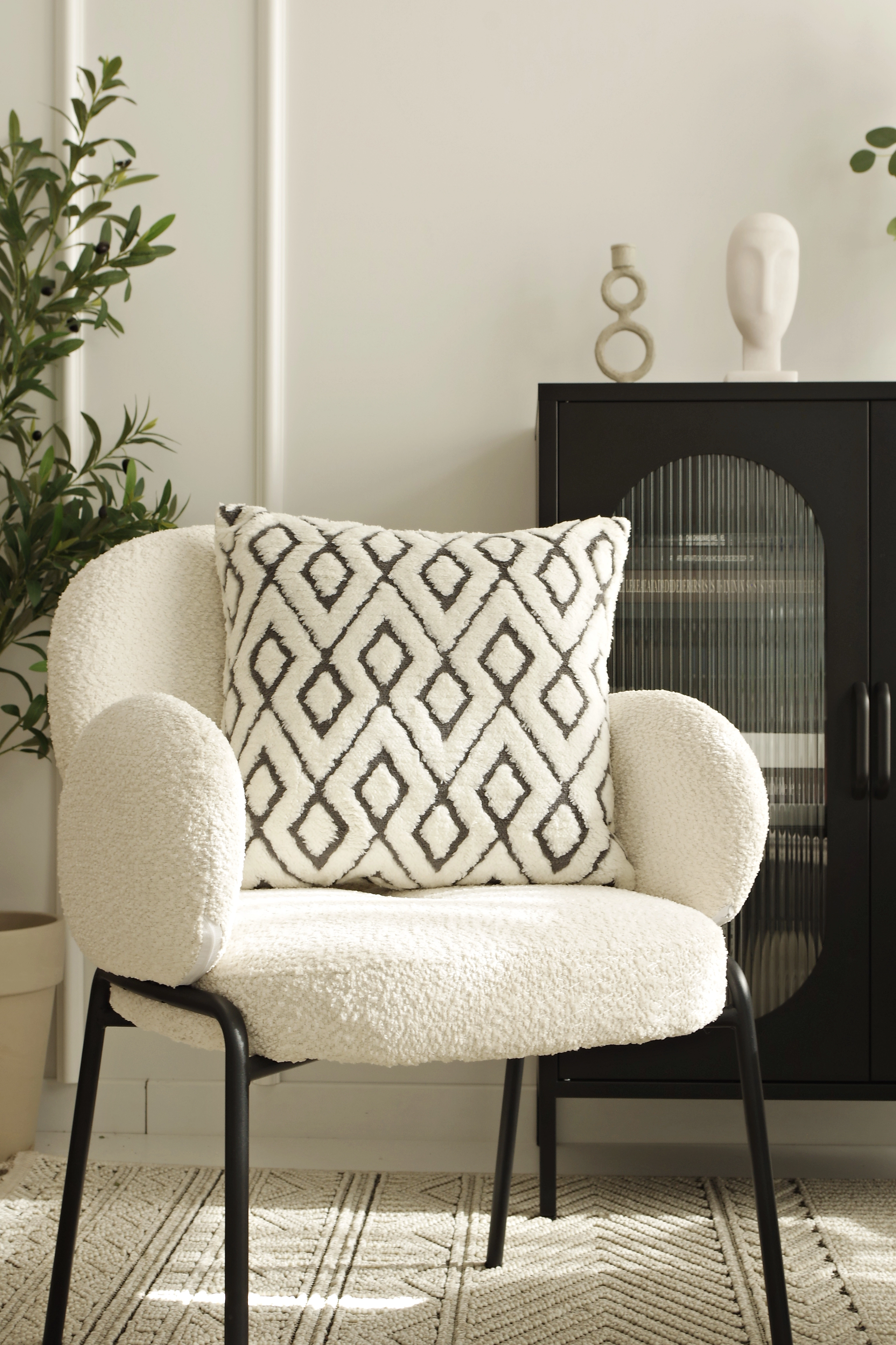 Poszewka na poduszkę MERIA 213 w kolorze biało-grafitowym to elegancki i nowoczesny dodatek do wystroju wnętrza. Wymiary 45x45 cm pasują do standardowych poduszek dekoracyjnych. Kontrastowe połączenie kolorów nadaje charakteru i świetnie uzupełnia aranżacje w stylu nowoczesnym, loftowym lub skandynawskim. Idealna do salonu, sypialni lub domowego biura.
