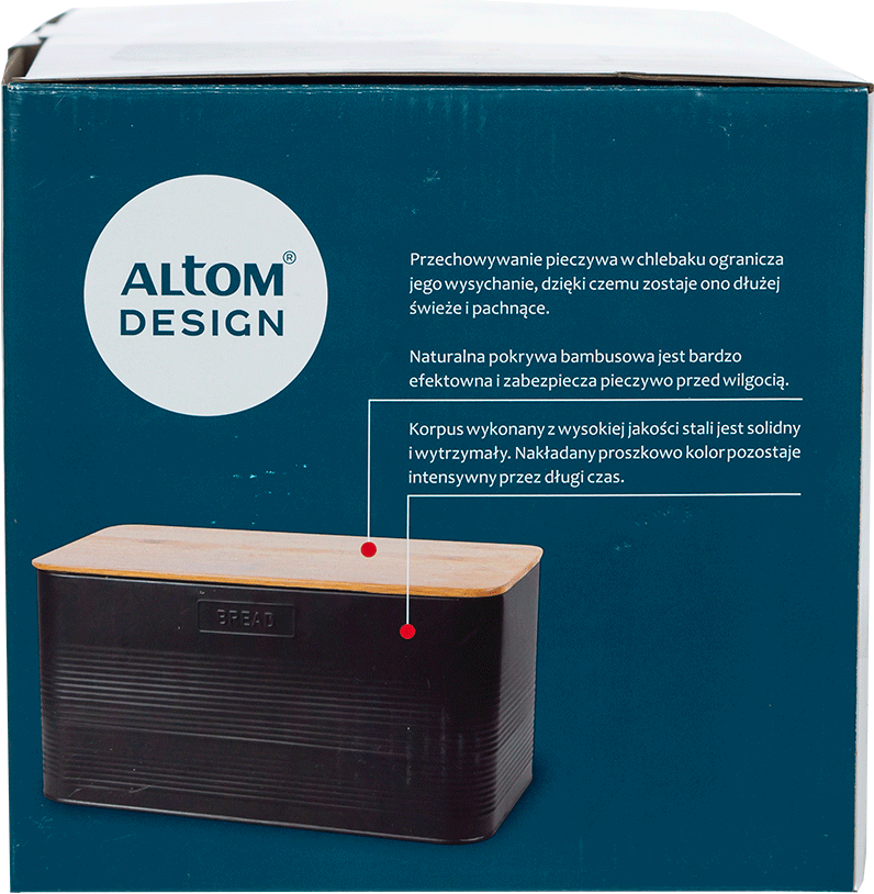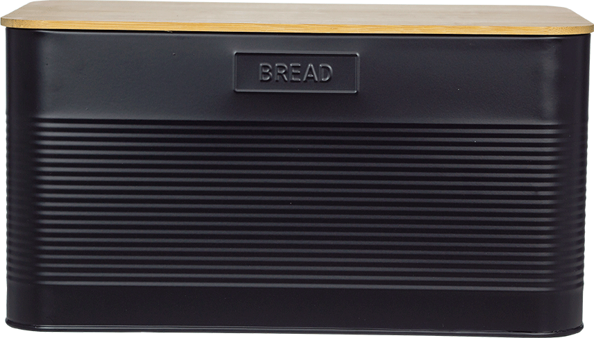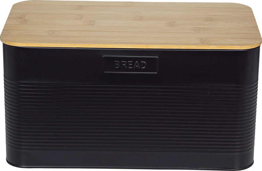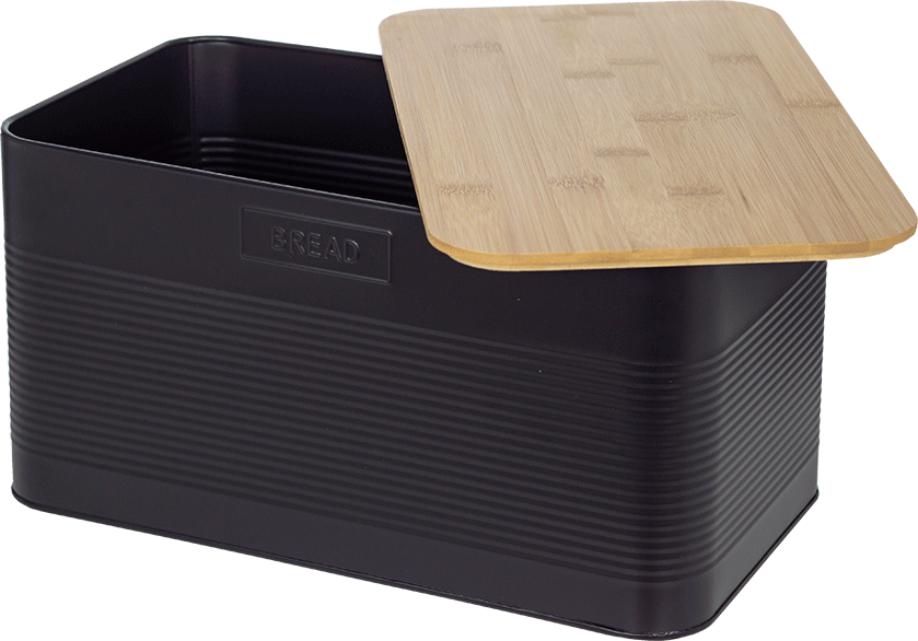 Chlebak w kolorze czarnym z pokrywką bambusową to elegancki i praktyczny pojemnik na chleb.