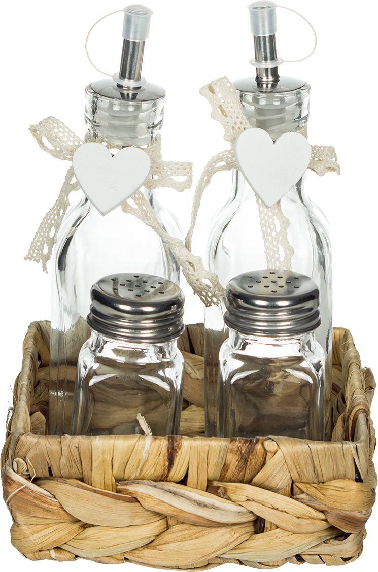 Zestaw szklanych przyprawników VIDIO w koszyczku z trawy to eleganckie i praktyczne akcesorium do każdej kuchni. Zestaw zawiera 4 szklane przyprawniki, z których dwa są ozdobione wstążką i serduszkiem. Koszyczek, w którym są umieszczone, dodaje całości estetycznego uroku, idealnie łącząc funkcjonalność z dekoracyjnym akcentem.