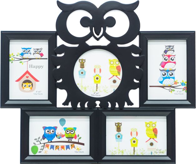 Elegancka dekoracyjna ramka na zdjęcia w kształcie sowy.