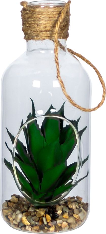Szklana butelka z kolekcji Tasso ze sztucznym sukulentem została wykonana z wysokiej jakości materiałów imitujących wygląd prawdziwej rośliny. Wspaniale będzie komponowała się z dodatkami wyposażenia wnętrz w kuchni, salonie, a nawet sypialni oraz łazience.
