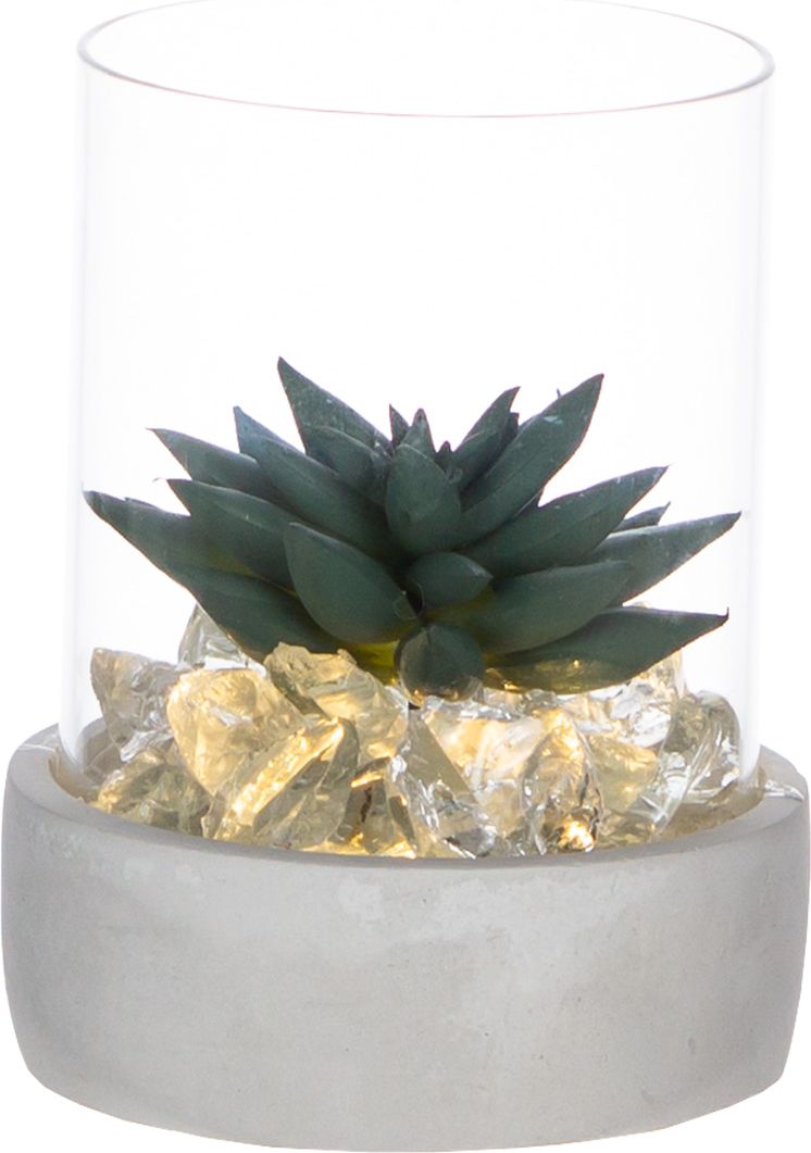 Dekoracja Tasso ze świecącymi kryształkami w stylu glamour nada Twojemu wnętrzu elegancji.Sztuczny sukulent pięknie będzie prezentował się w salonie, sypialni czy łazience, jako dopełnienie wystroju każdego, eleganckiego domu.