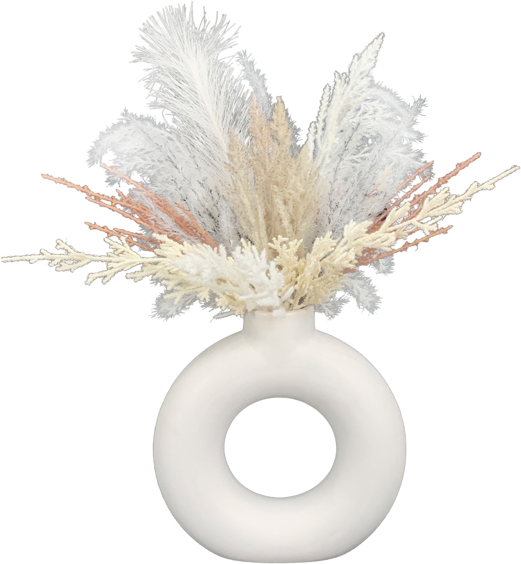 Sztuczna kompozycja z traw "FLORINO"-149 w ceramicznym wazonie to elegancki i naturalnie wyglądający element dekoracyjny. Jej wymiary wynoszą 20 cm długości, 6 cm szerokości i 44 cm wysokości, co sprawia, że doskonale prezentuje się na stole, komodzie lub półce. Delikatne trawy w połączeniu z estetycznym wazonem nadają wnętrzu lekkości i harmonii. Idealna do nowoczesnych oraz klasycznych aranżacji, nie wymaga pielęgnacji i zawsze wygląda świeżo.