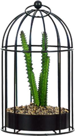 Dekoracyjny sztuczny sukulent w metalowej oprawie - klatce nadającej się do zawieszenia.