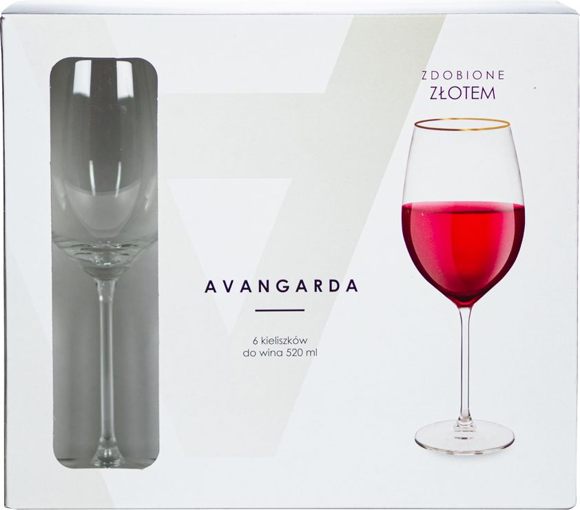AVANGARDA-4 -to zestaw sześciu kieliszków do wina z charakterystycznym, złotym zdobieniem. Ich klasyczny owalny kształt jest idealnie wyprofilowany. AVANGARDA to niezbędny zestaw w każdym domu. Pojemność kieliszka to 520ml.