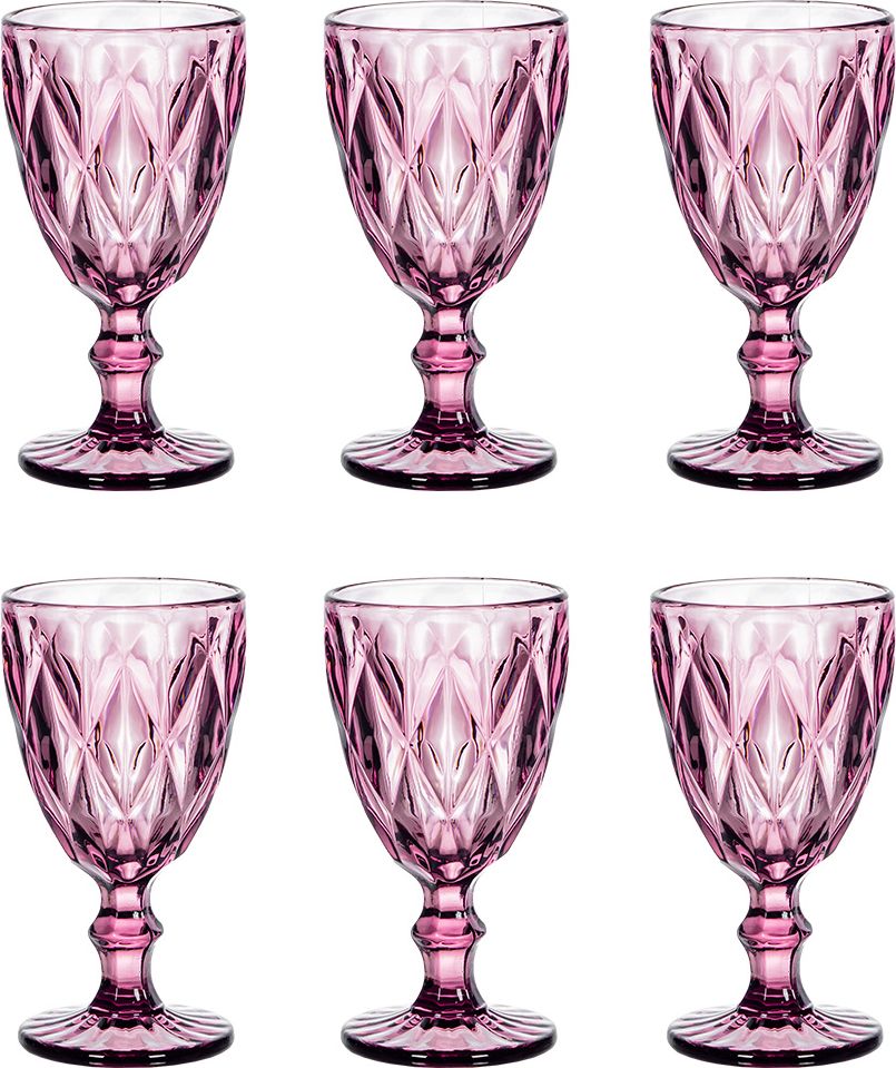 Zestaw kieliszków Elise z grubego szkła z trójwymiarowym wzorem w kolorze różowym.