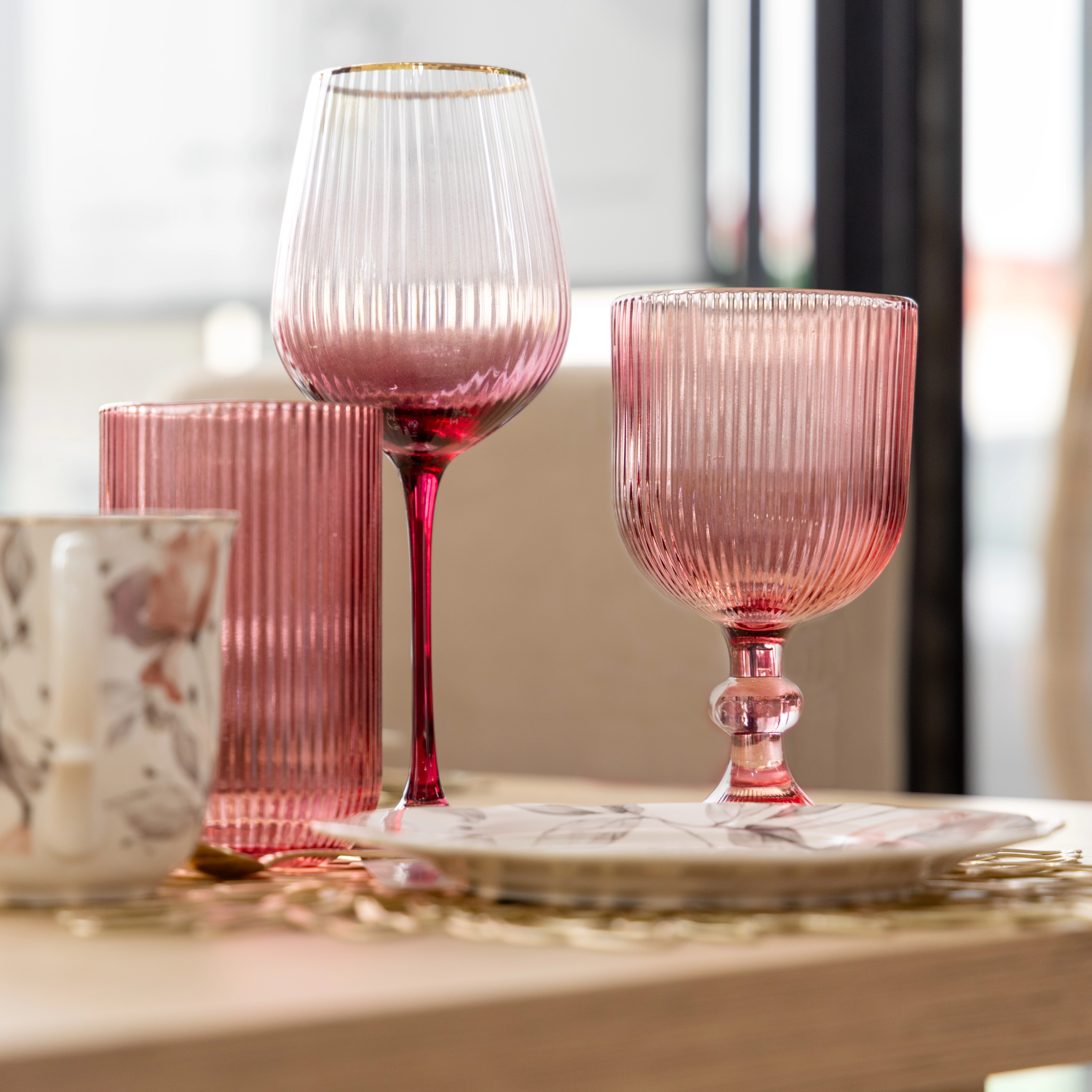 Kieliszek do wina ryflowany Rifle w kolorze różowym z efektem ombre i ze złotym rantem to wyjątkowy i stylowy wybór. Pojemność 460 ml sprawia, że jest idealny do serwowania wina podczas eleganckich spotkań. Ryflowana faktura, subtelne przejście kolorów i luksusowy złoty rant nadają mu wyrafinowanego charakteru, który doskonale pasuje na specjalne okazje.