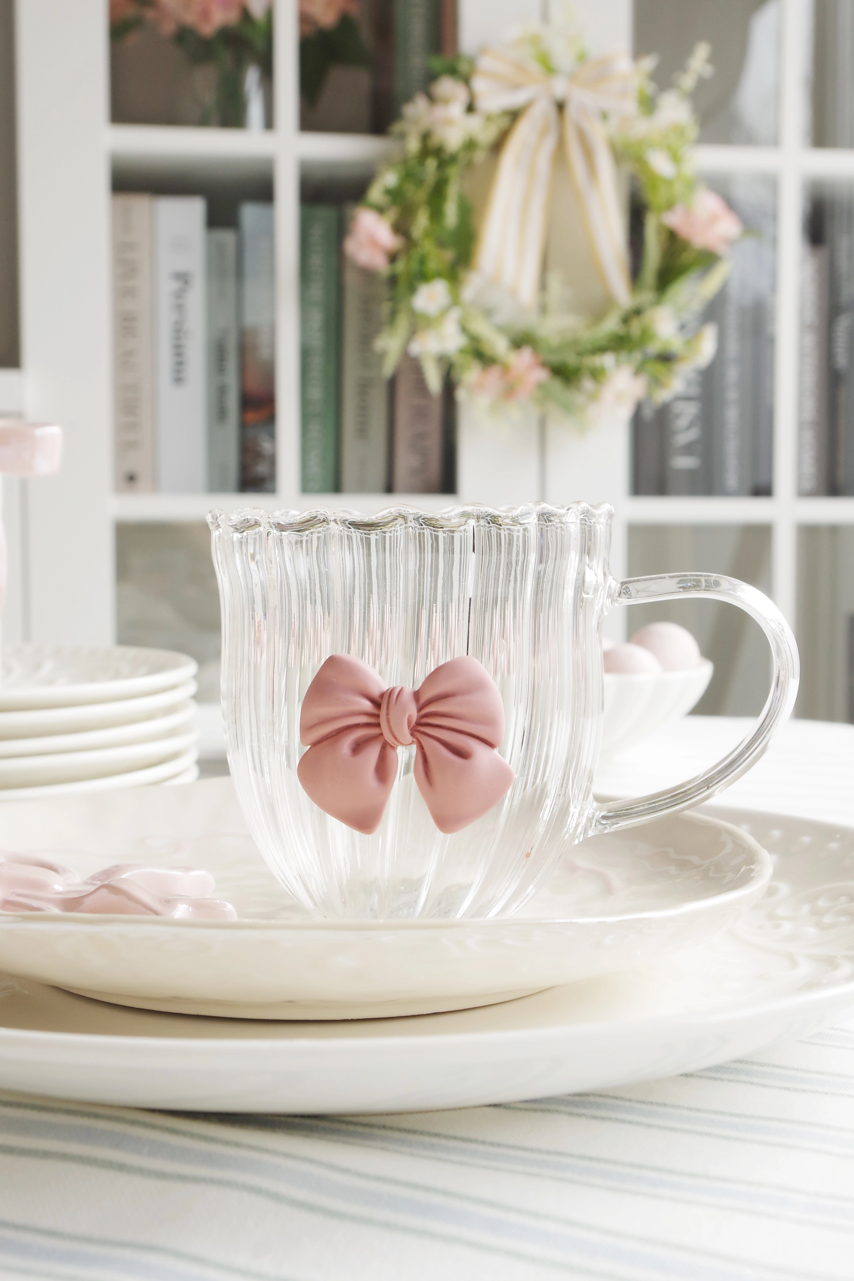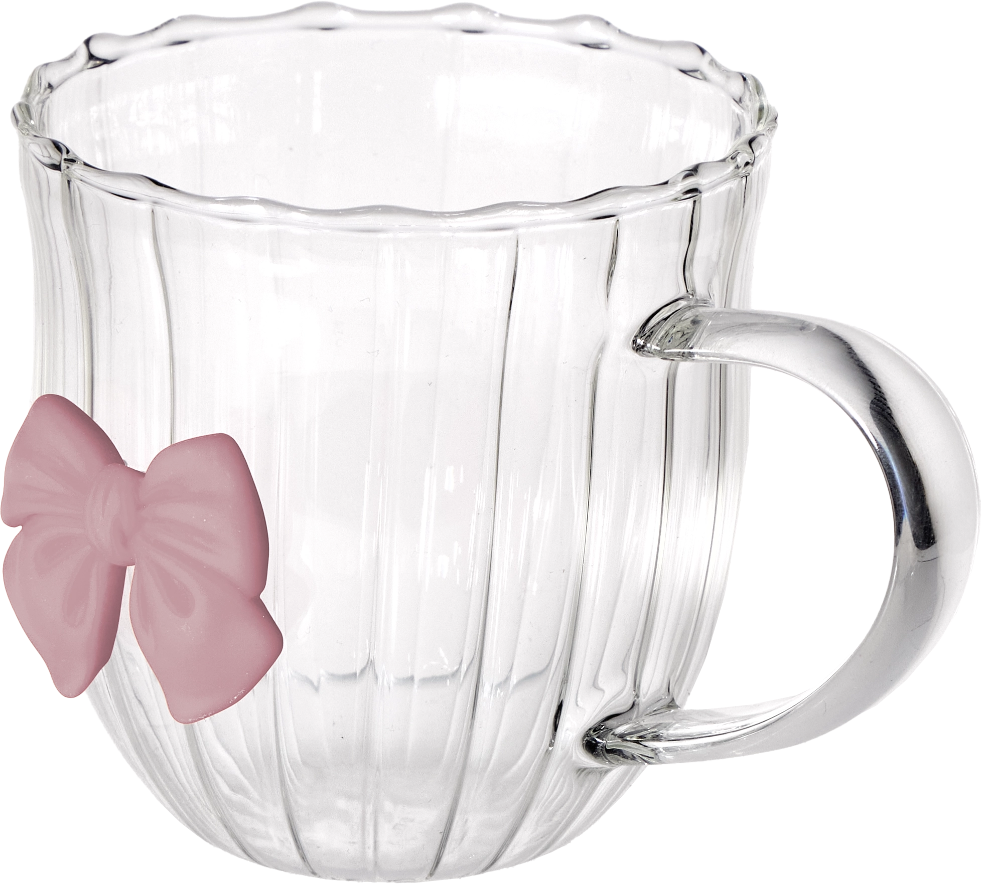 Kubek ryflowany „BELLA”-34 to uroczy i stylowy element zastawy, który wyróżnia się dekoracyjną różową kokardką, dodającą mu delikatnego, romantycznego charakteru. Ryflowana struktura szkła nadaje kubkowi elegancji i sprawia, że prezentuje się wyjątkowo efektownie.