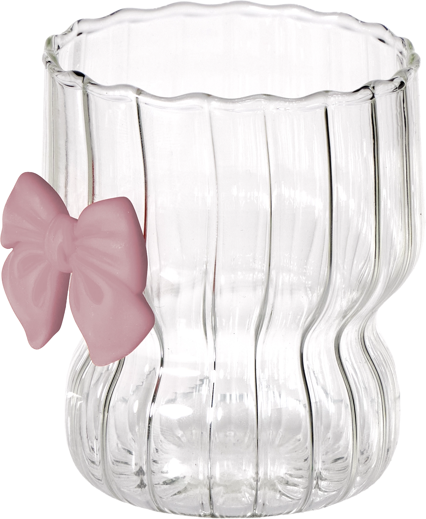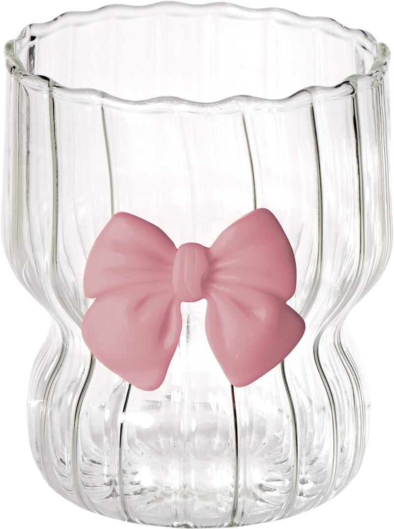 Szklanka ryflowana „BELLA”-33 to uroczy i stylowy element zastawy stołowej, wyróżniający się dekoracyjną różową kokardką, która nadaje jej delikatnego, romantycznego charakteru. Ryflowana struktura szkła podkreśla elegancję formy i sprawia, że szklanka prezentuje się wyjątkowo efektownie.