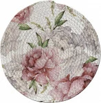 Mata stołowa (okrągła) "PIRES"-41 w kolorze kremowym z wzorem kwiatów to elegancki i funkcjonalny dodatek do stołu. Jej średnica 36 cm sprawia, że doskonale nadaje się do codziennego użytku oraz dekoracji podczas spotkań przy stole. Subtelny kwiatowy motyw dodaje wnętrzu lekkości i romantycznego charakteru, a neutralna kremowa baza sprawia, że mata pasuje zarówno do klasycznych, jak i nowoczesnych aranżacji jadalni.