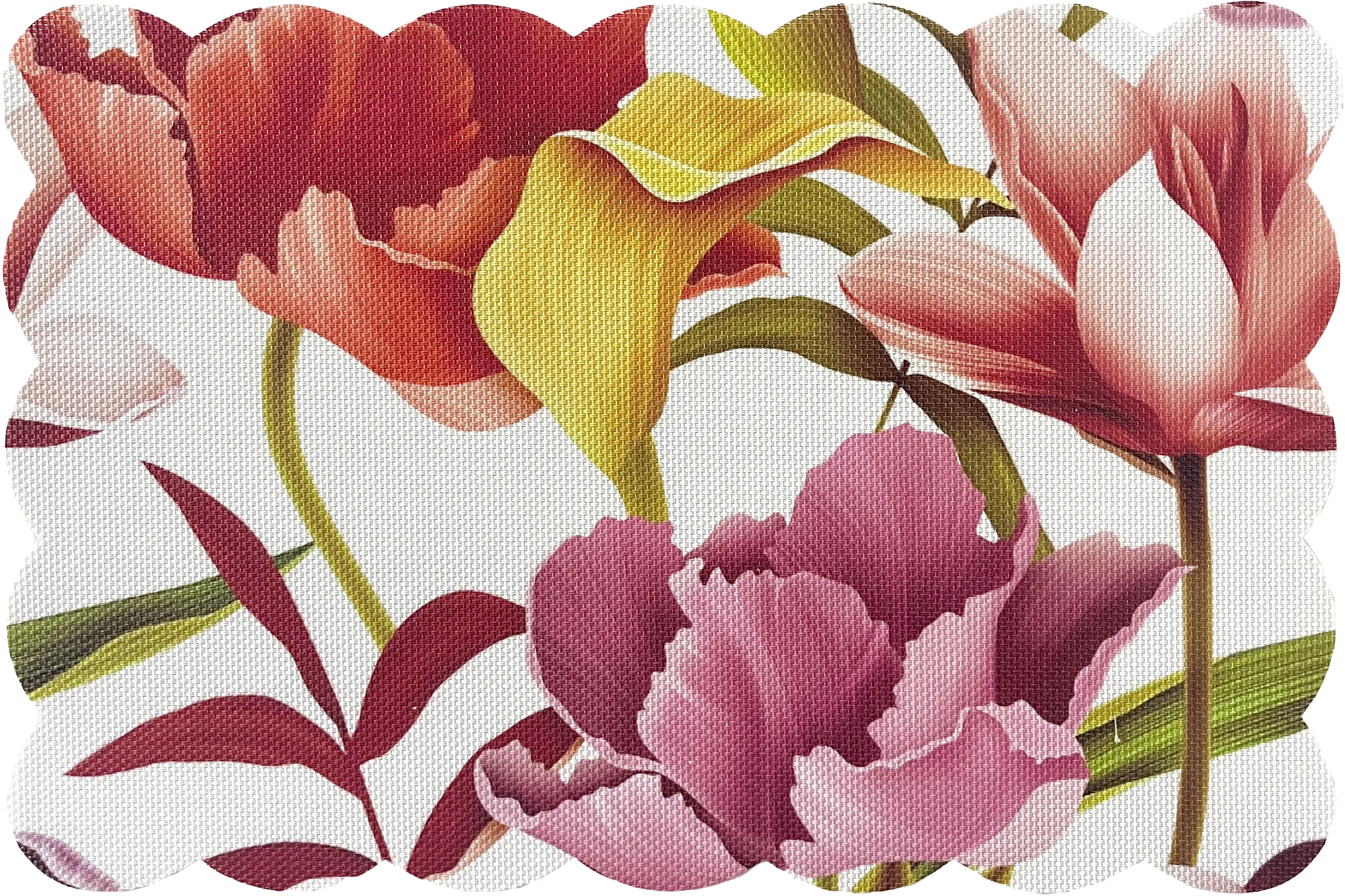 Mata stołowa w kolorze białym z wzorem kwiatów to elegancki dodatek do Twojego stołu, który doda lekkości i uroku każdej przestrzeni. Wymiary 30 x 45 cm sprawiają, że mata idealnie pasuje do mniejszych powierzchni, takich jak stół w kuchni czy jadalni. Kwiatowy wzór na białym tle wprowadza do wnętrza subtelną świeżość, doskonale komponując się z różnymi stylami aranżacyjnymi.