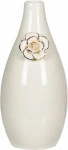 Ceramiczny, ozdobny wazon z kolekcji Altigo w kolorze kremowym to wyrafinowany dodatek wyposażenia wnętrz. Piękny, subtelny motyw kwiatu w całej kolekcji podkreśli wyjątkowość produktu i nada wnętrzom ujmującego uroku. Złote, delikatnie zarysowane wykończenie dopełni całości.