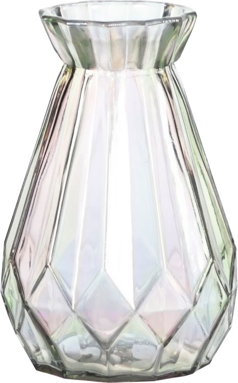 Wazon szklany Tasso o geometrycznej strukturze, wysokości 25 cm i średnicy 9,5 cm.