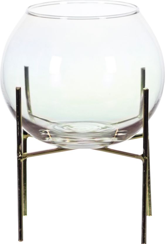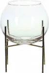 Dekoracyjna misa szklana na metalowej podstawie o stylowym wyglądzie.