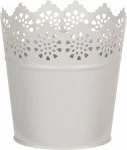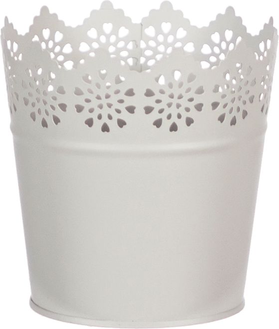 Biała doniczka z ażurowym wykończeniem delikatnie ozdobi każdą małą roślinę.