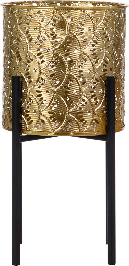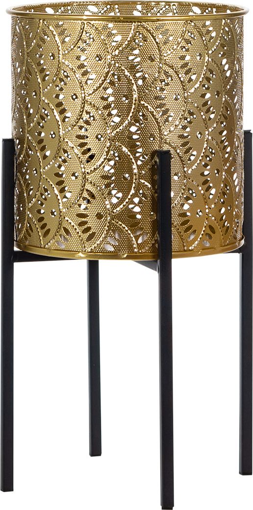 Metalowy, złoto-czarny kwietnik na doniczkę w nowoczesnym stylu idealnie wkomponuje się w każde wnętrze.