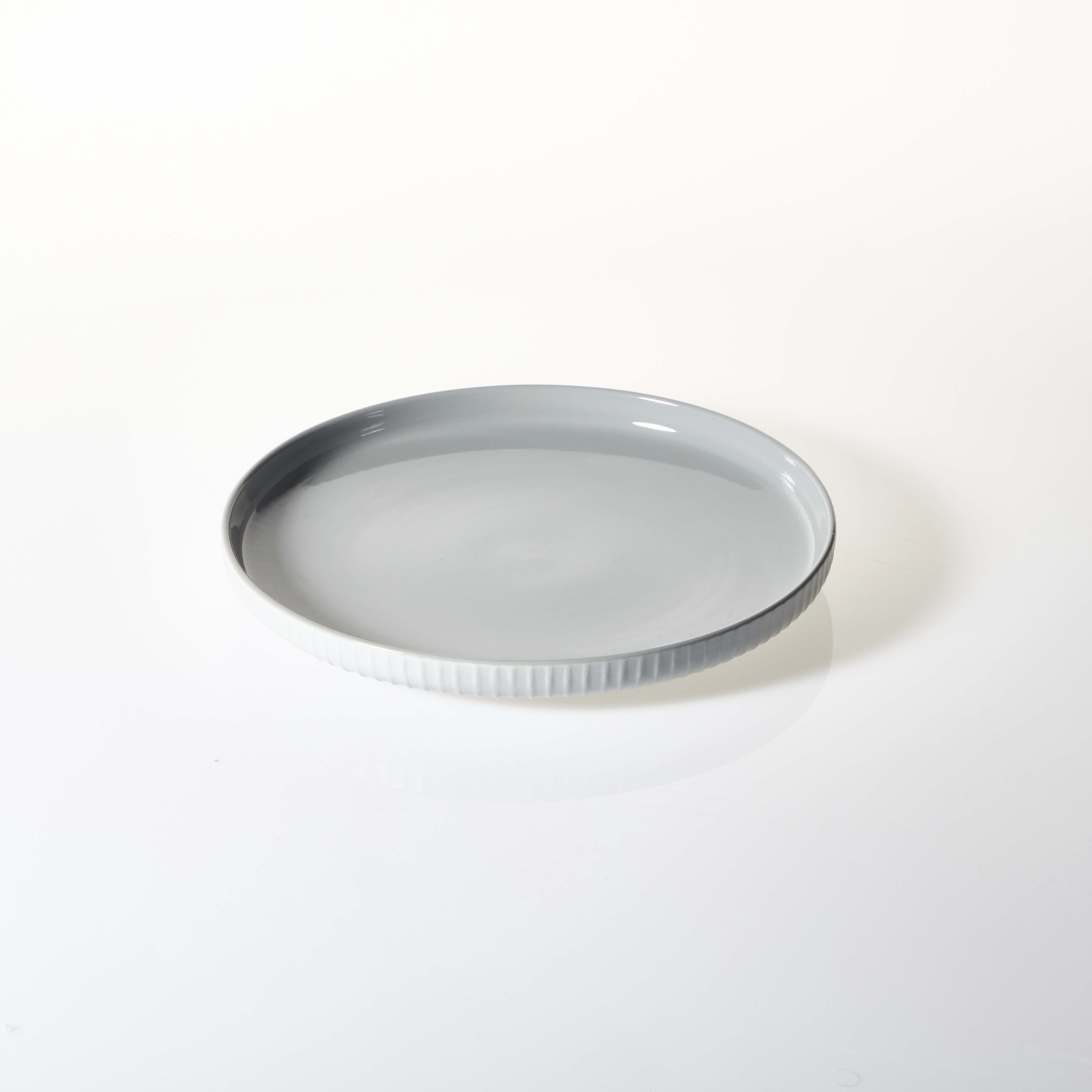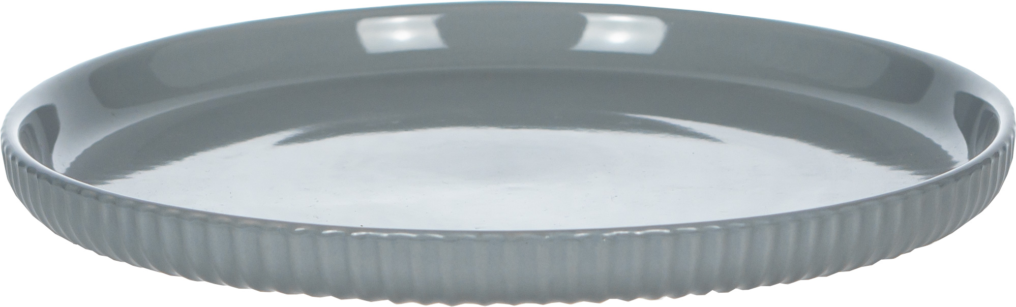 Powierzchnia talerza utrzymana jest w stonowanym odcieniu szarości, co nadaje mu nowoczesny i uniwersalny charakter. Kolor szary jest idealnym tłem dla różnorodnych deserów, podkreślając ich smak i prezentację. Błyszcząca faktura talerza dodaje mu subtelności i delikatności.