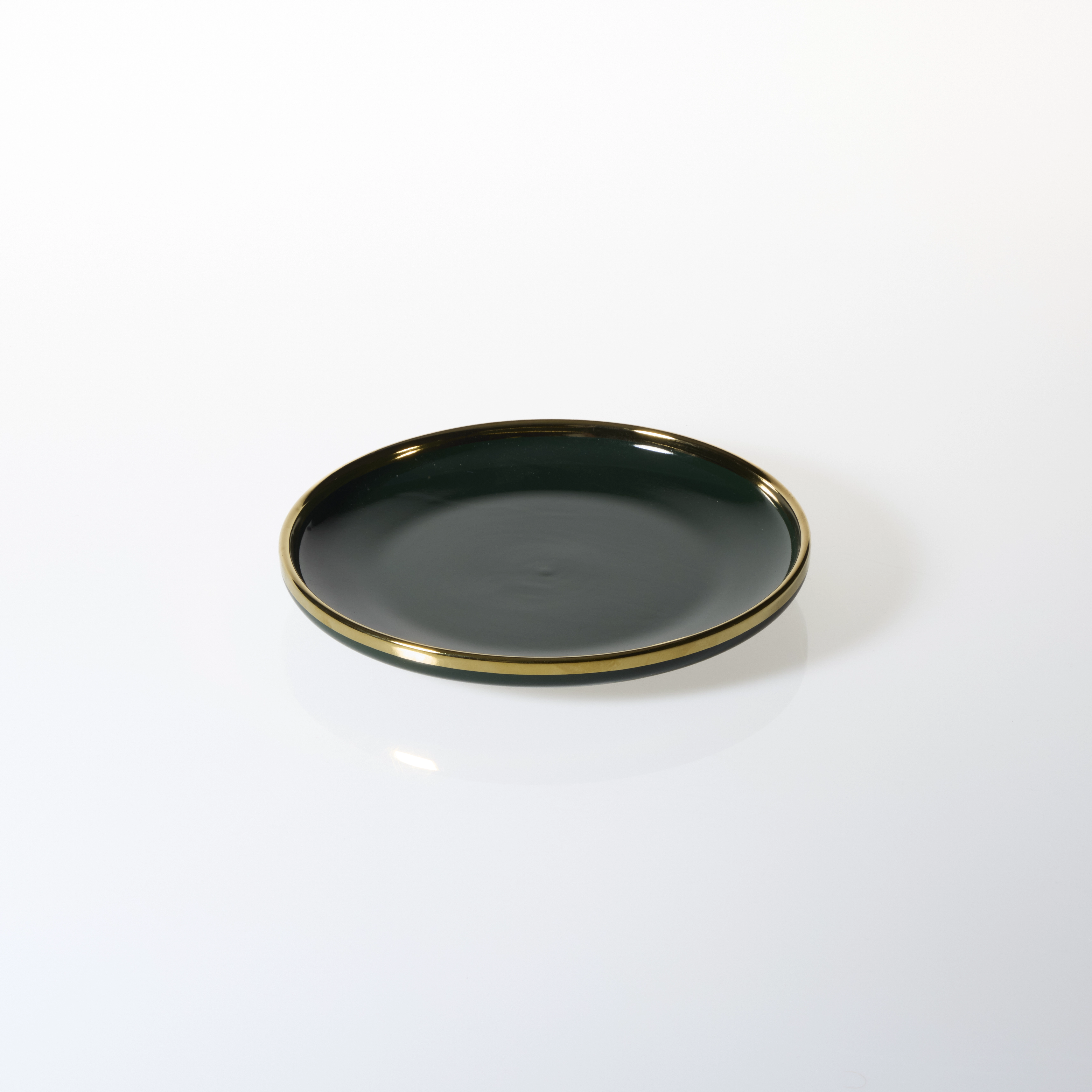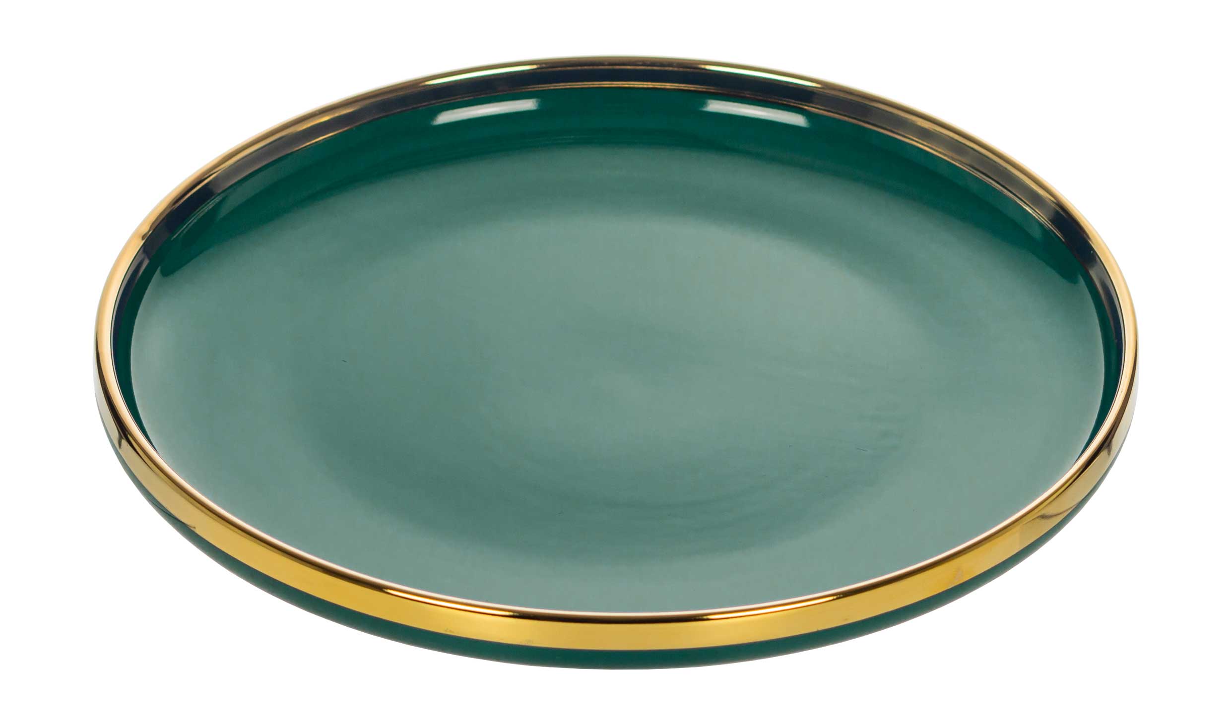 Talerz deserowy Cindy zielony ze złotym paskiem