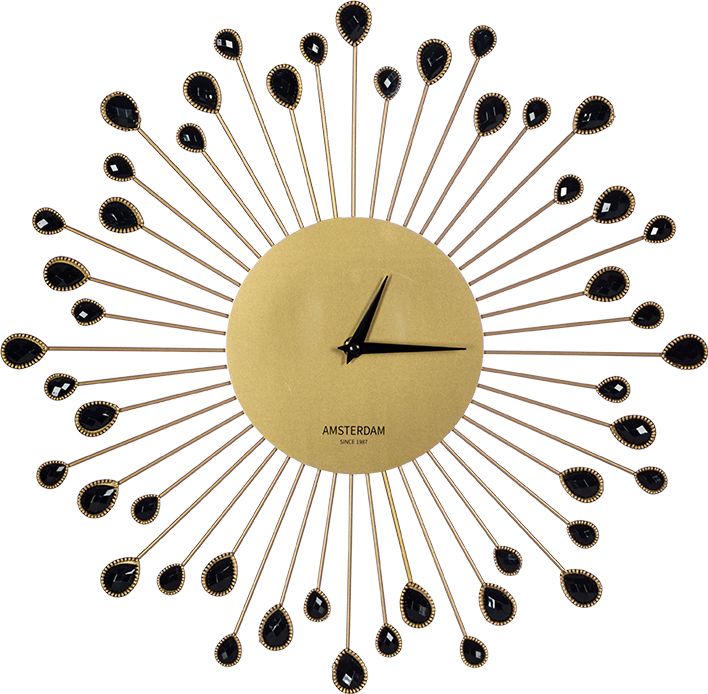 Elegancki zegar z czarnymi elementami w kształcie diamentów, metalowo-akrylowy z czarnymi wskazówkami. Zegar ma średnicę 44 cm oraz zasilany jest za pomocą jednej baterii AA (nie dołączona do zestawu).