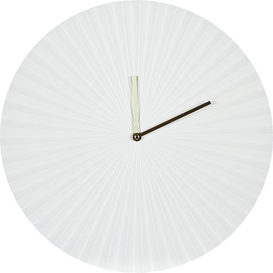 Elegancki biały zegar o strukturze wachlarza ze złotymi wskazówkami. Zegar ma średnicę 40 cm oraz jest zasilany za pomocą jednej baterii AA (nie dołączona do zestawu).