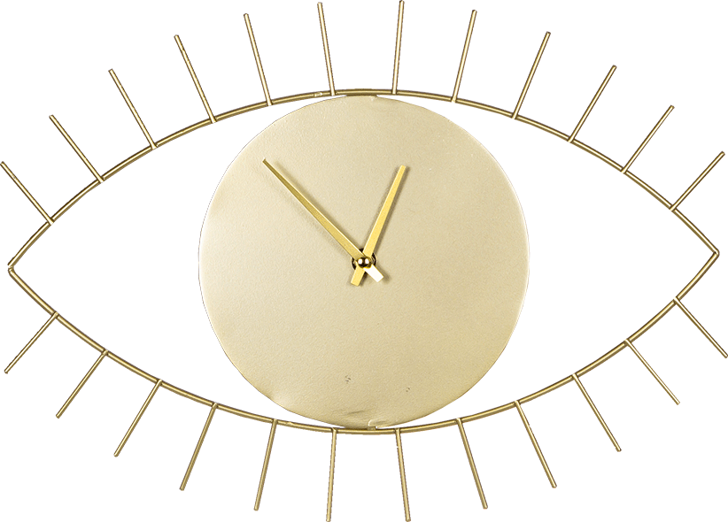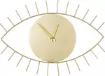Elegancki zegar ścienny w kolorze złotym, który jest zasilany za pomocą jednej baterii AA (nie dołączona do zestawu).