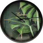 Zegar ścienny Hapy Time 43 z motywem liści w kolorach czarnym i zielonym to stylowy dodatek inspirowany naturą. Nowoczesna grafika liści w połączeniu z ciemną ramką tworzy eleganczny i wyrazisty akcent na ścianie. Idealnie sprawdzi się w salonie, sypialni lub biurze, szczególnie w aranżacjach z nutą boho lub nowoczesnego minimalizmu.