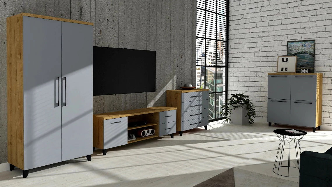 Kolekcja szarych mebli pokojowych Panama to jedna z modułowych serii. Pasuje ona zarówno do małych, jak i dużych salonów. Poszczególne moduły można ustawić na wiele sposobów. To świetna alternatywa dla klasycznych meblościanek. Gdy znudzi nam się wystrój, możemy poprzestawiać szafki oraz zmienić dodatki. W ten sposób nadamy wnętrzu nowe oblicze bez ponoszenia dużych nakładów finansowych.