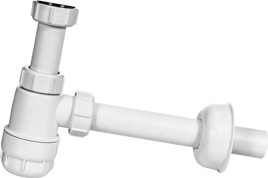 Wykonany z zagęszczonego polipropylenu syfon butelkowy przeznaczony do umywalek lub bidetów w kolorze białym. Zestaw posiada uszczelki oraz rozetę maskującą. Średnica otworu na kołek oraz odpływu wynosi 32 mm (rozmiar standardowy). Syfon jest odporny na środki chemiczne.