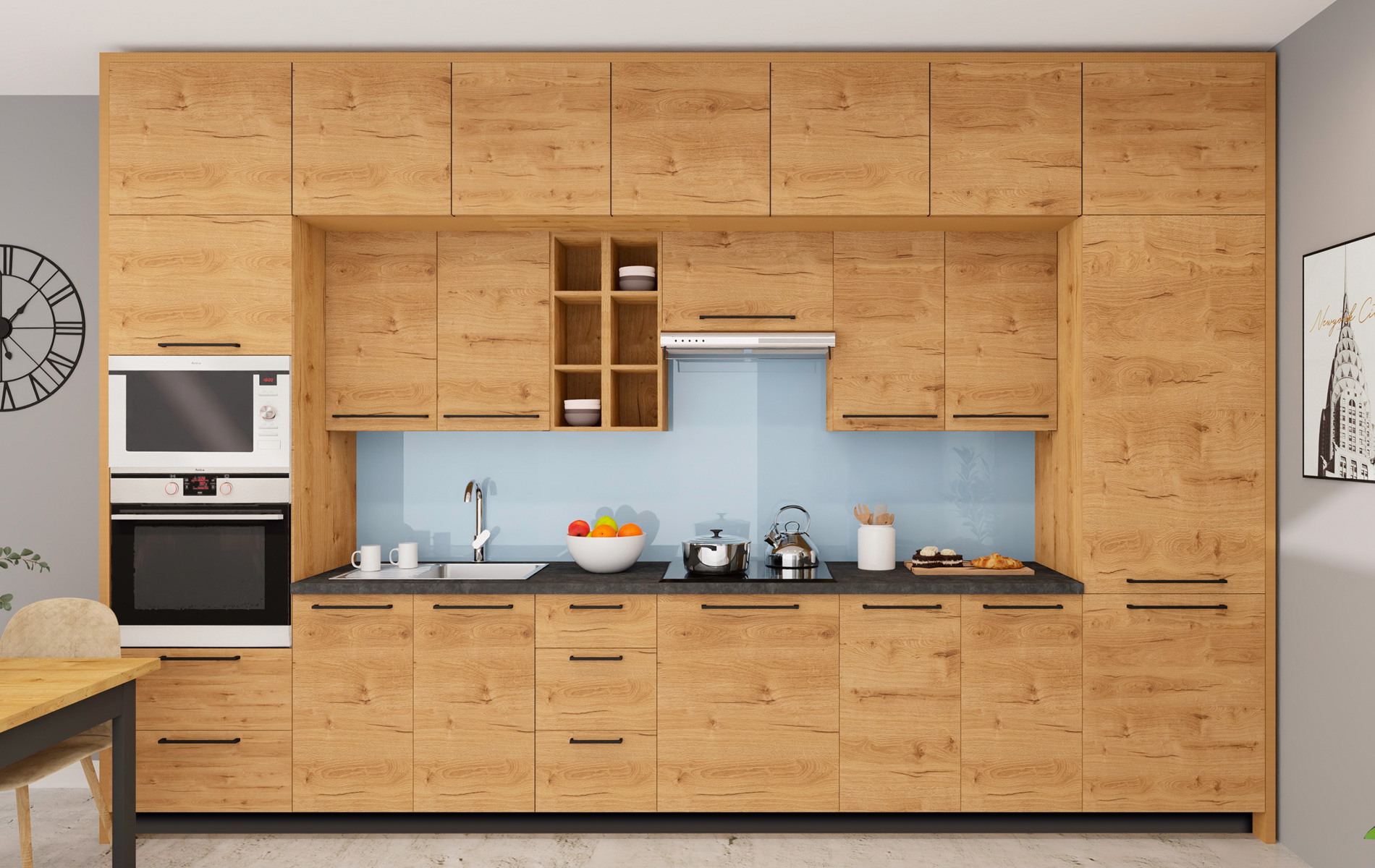 Cokół kuchenny to element maskujący przestrzeń pod dolnymi szafkami. Pełni funkcję estetyczną oraz ułatwiającą sprzątanie. Dostępny jest w różnych kolorach, co pozwala dopasować go do stylu kuchni.